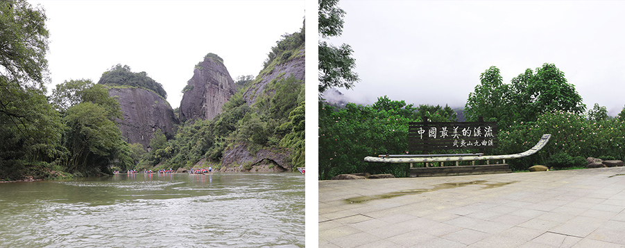 九曲溪隨波逐流而下,溪面忽而平緩似池,忽而湍急如潮,竹排隨之或珊珊而行,或急流而下,好不刺激!沿途聽著艄公為我們講解各種典故,當(dāng)然還有搞笑的段子,一陣陣笑聲在耳邊繚繞,讓人忘卻憂愁。
