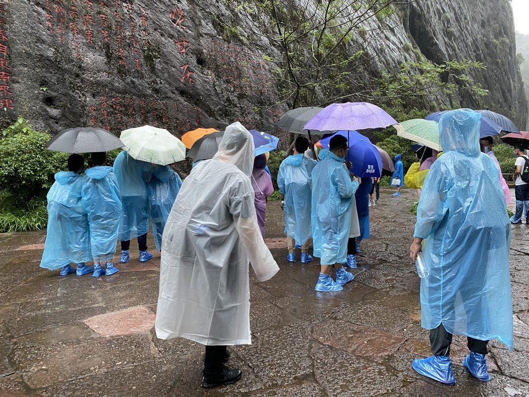 來到武夷山,當(dāng)然少不了要參觀大紅袍母樹。據(jù)導(dǎo)游說:“不看遺憾終生,看了終身遺憾。。?!薄R虼烁羝鹆诵』飩兊暮闷嫘?,就算下著大雨也阻擋不了大家的熱情,大家全副武裝前往大紅袍景區(qū),只為一睹這“茶中之王”的真容。