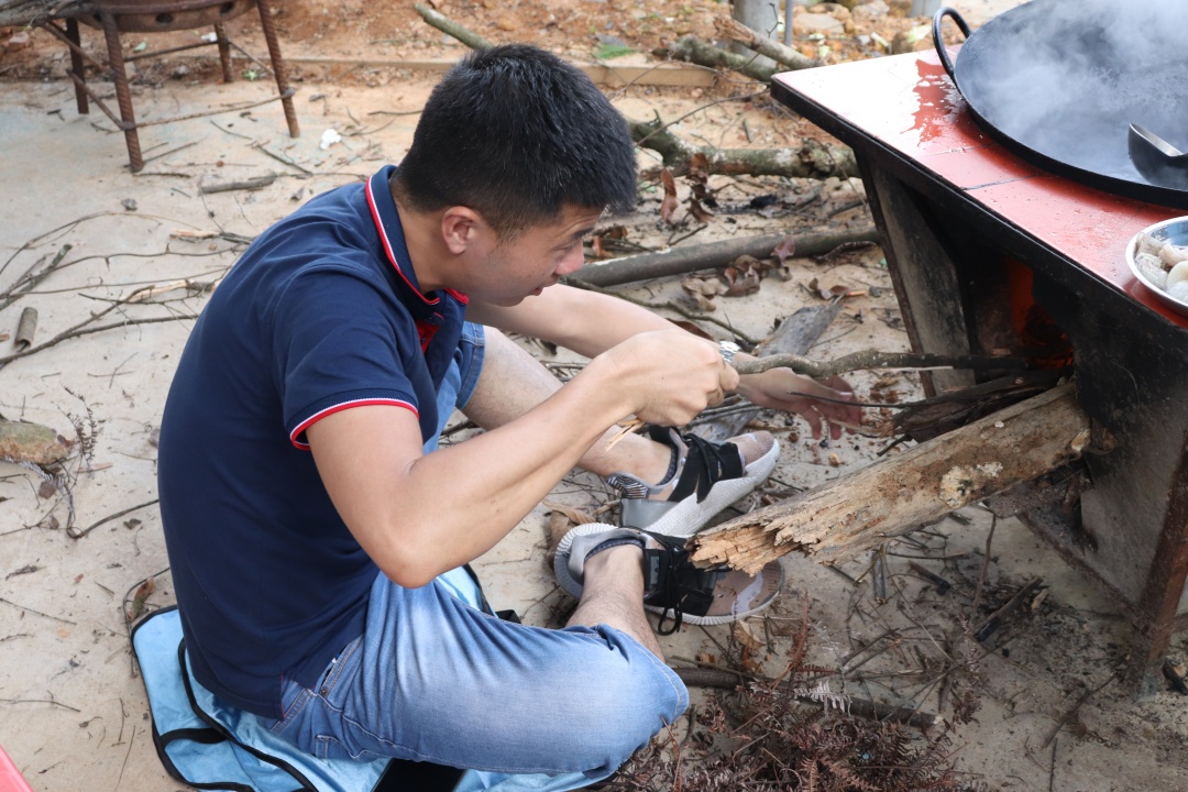 旭豐的小伙伴們不僅上得戰(zhàn)場(chǎng),還進(jìn)得了廚房。拾柴、生火、洗菜、備料、炒菜、擺盤(pán),一氣呵成。吃著這色香味俱全的“滿漢全席”,所有人的臉上都洋溢著滿足的笑容。